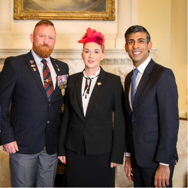 L-R Mr Mick Riley MBE. Mrs Jennie Riley & The Right Honourable Rishi Sunak (at the time, Prime Minister)